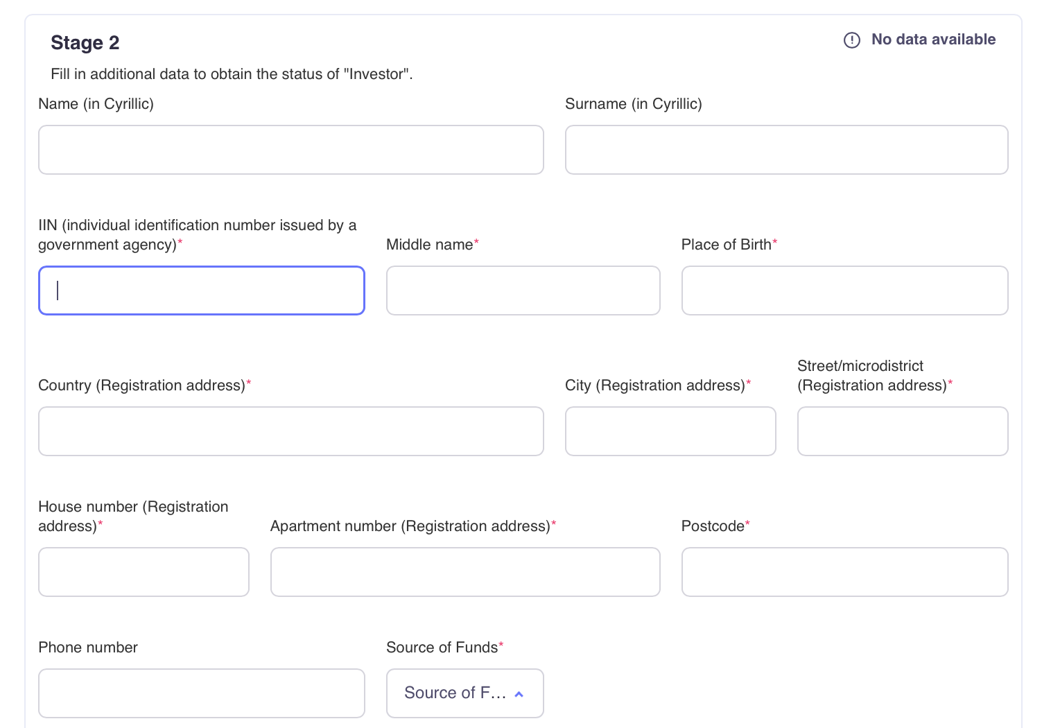 - Stage 2: Providing additional information to obtain the «Investor» status.
