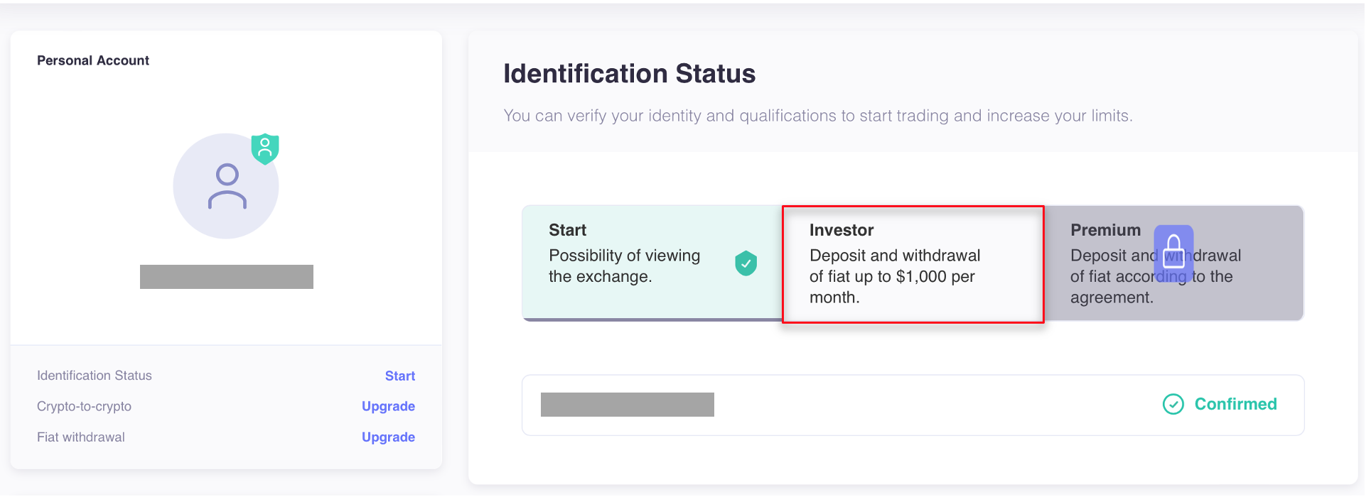 2. Choose the «Investor» status to be able to deposit and withdraw funds up to $1000 per month.