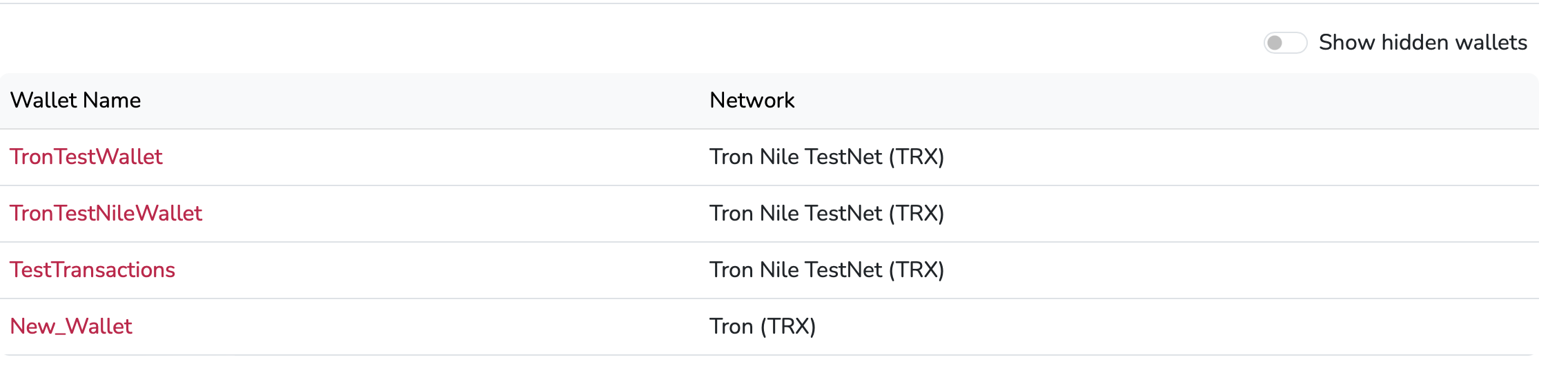 After pressing the «Create Wallet» button, the next window will open, displaying all the wallets you have previously created: