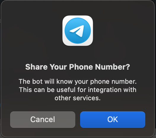 9. Перед покупкой бот запросит у вас номер вашего телефона для верификации аккаунта. Нажмите '✅ Подтвердить' или значок ⌨️ в поле ввода сообщения, если не видите кнопку.