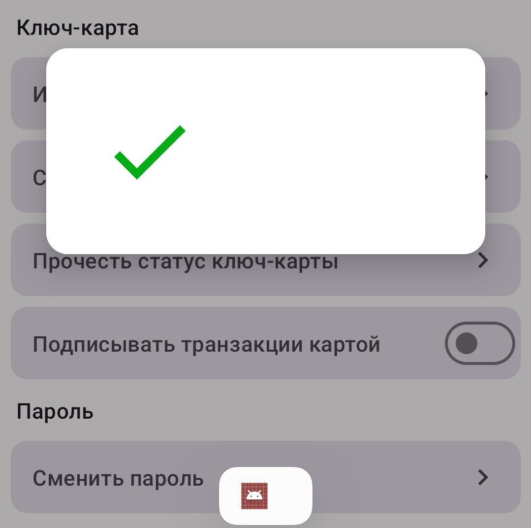 - Нажмите на ползунок «Подписывать транзакции картой. Если вы не видите данное поле, попробуйте пролистать экран вниз, до раздела «Ключ-карта».