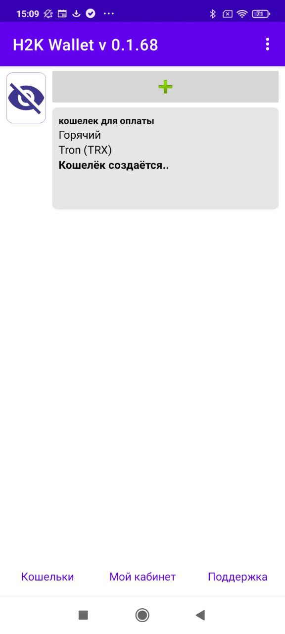 3) Подождите, пока запрос на создание кошелька обрабатывается.