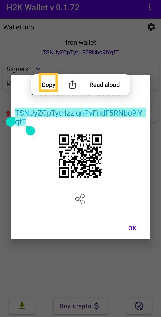 Как скопировать адрес кошелька?
